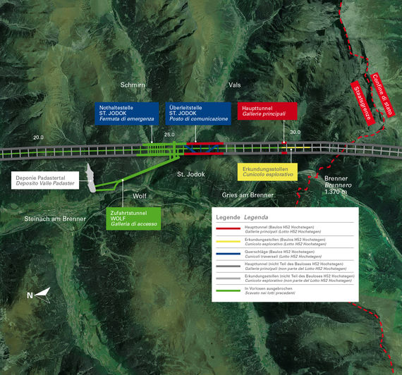 Lot H52 "Hochstegen" in the municipality of Steinach am Brenner is part of the former, newly designed lot H51 "Pfons-Brenner". This previous project section was divided into different construction lots in order to ensure the fastest and most efficient continuation of the work in terms of rapid overall project progress. The Wolf access tunnel is being used for the main development.